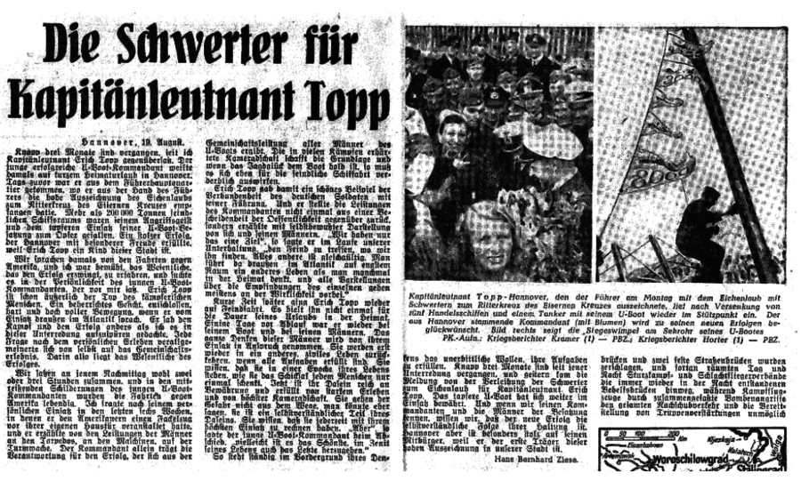 Dann kam der erste U-Boot-Kommandant - Otto Kretschmer erhielt sie am 26. Dezember 1941 in amerikanischer Gefangenschaft.