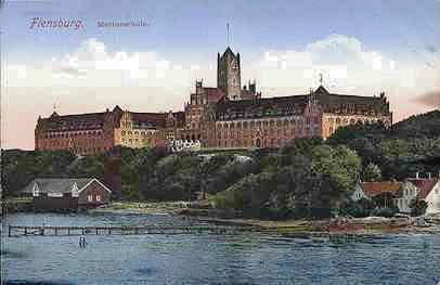 Der Ausbau der Kaiserlichen Marine erforderte um die Jahrhundertwende den Neubau einer Marineschule für die Offizierausbildung. 1903 wurde auf Vorschlag des Prinzen Adalbert von Preußen - unter anderem aus disziplinarischen Gründen - der Entschluss gefasst, die Marineschule aus der Großstadt Kiel in die nördliche Provinz an das Ostufer der Flensburger Förde zu verlegen. Die ausgedehnte Anlage mit ihrer über 200 m langen, parallel zum Fördeufer angelegten Front wurde nach Plänen des Marinebaurates Albert Kelm erbaut.